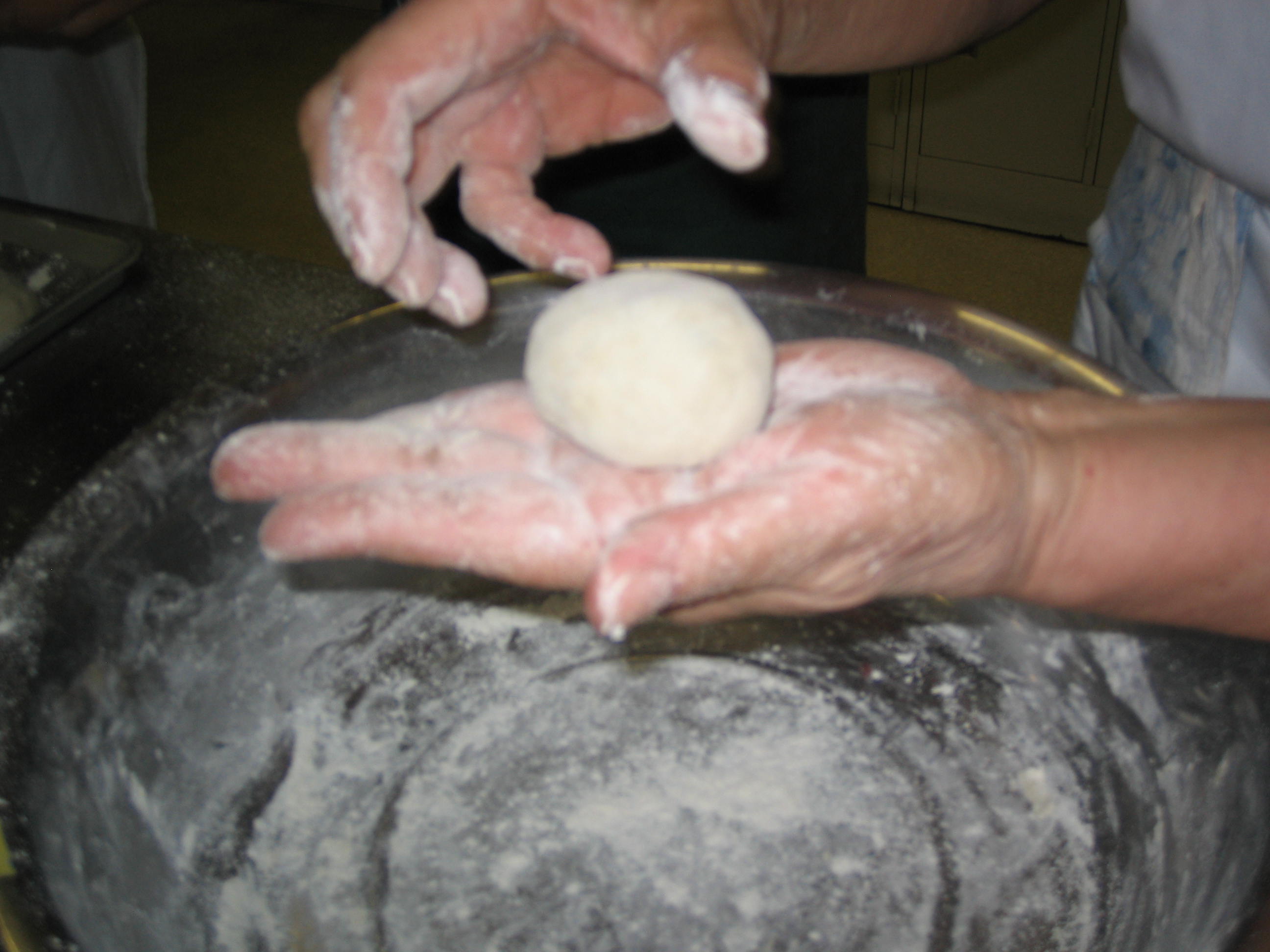 まんじゅう作りに挑戦です。そば粉が手にベッタリ あんが少々
