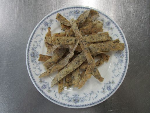 海苔を混ぜたものと唐辛子を混ぜて油で揚げた「そばステック」も