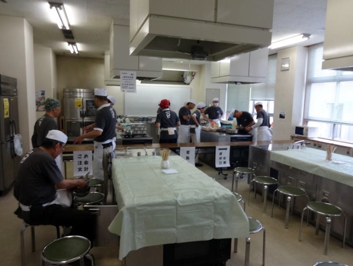 調理教室備え付けの釜が小さく火力も弱いので、少量ずつしか茹でられないことが毎年の悩みです。今年も最大20分待ちになってしまいました。安全面から釜を2つ使うようなことはできませんし、列が出来はじめたらお客様に時間をずらすよう早めにお願いをするなどで、少しでも改善していきたいと思います。