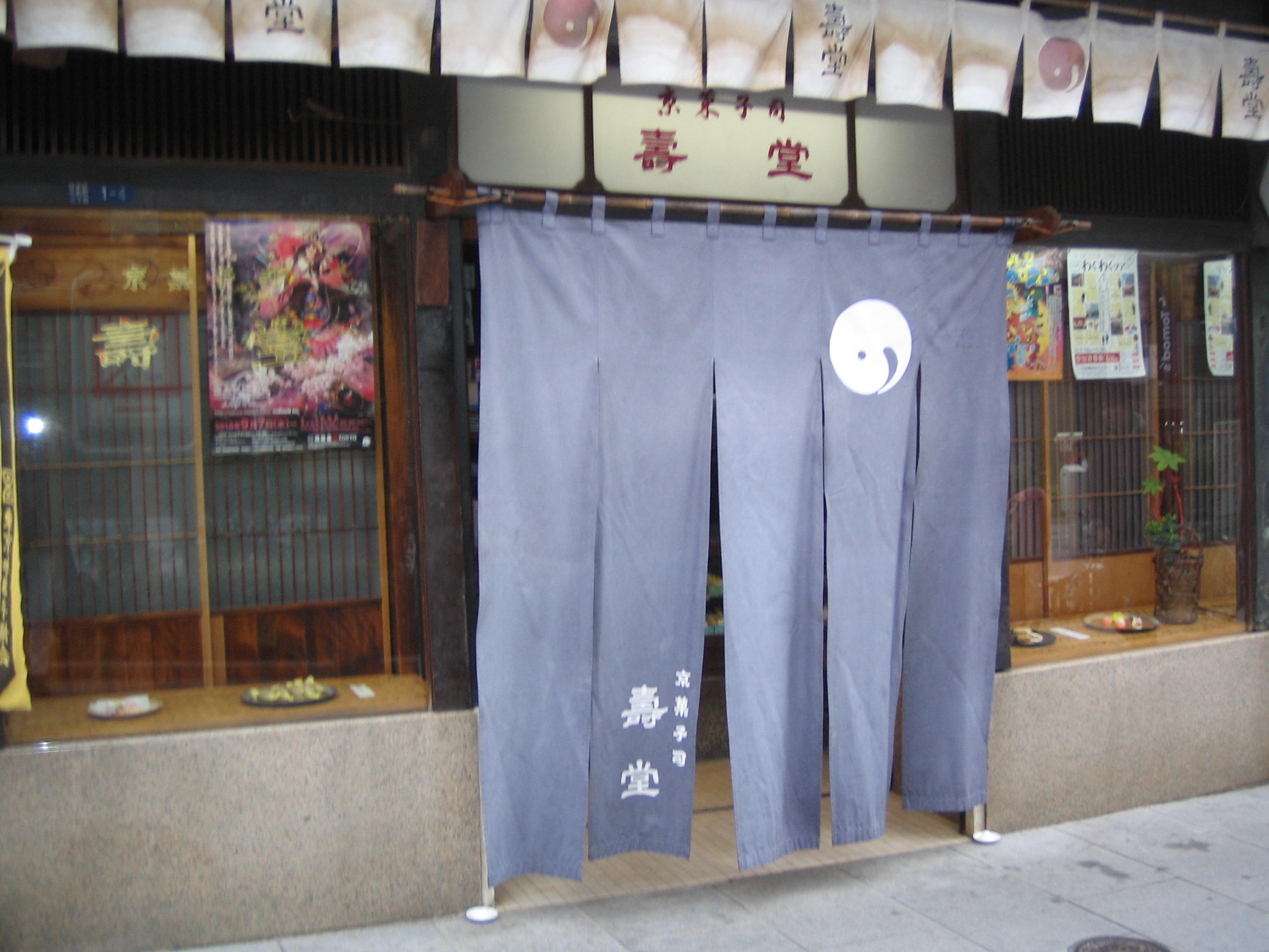 人形町表通りにある老舗の和菓子屋さん「壽堂」。大きな暖簾が目印でショウーウインドーには数々の和菓子が並び、季節を先取りした美しい店先になっています。今日は「柿の練り切り」が飾ってありました。ここは「黄金芋」というお菓子が有名な店で、私はいつも実家に帰る時はこのお菓子を買っていきました。まだ祖母が元気でいたころ、この黄金芋が大好きで、本当のお芋と思っていたらしく、「甘くて美味しい」とうれしそうに食べていました。私たちも「そうね、美味しいね」と言ってみんなで食べていたのを懐かしく思い出します。