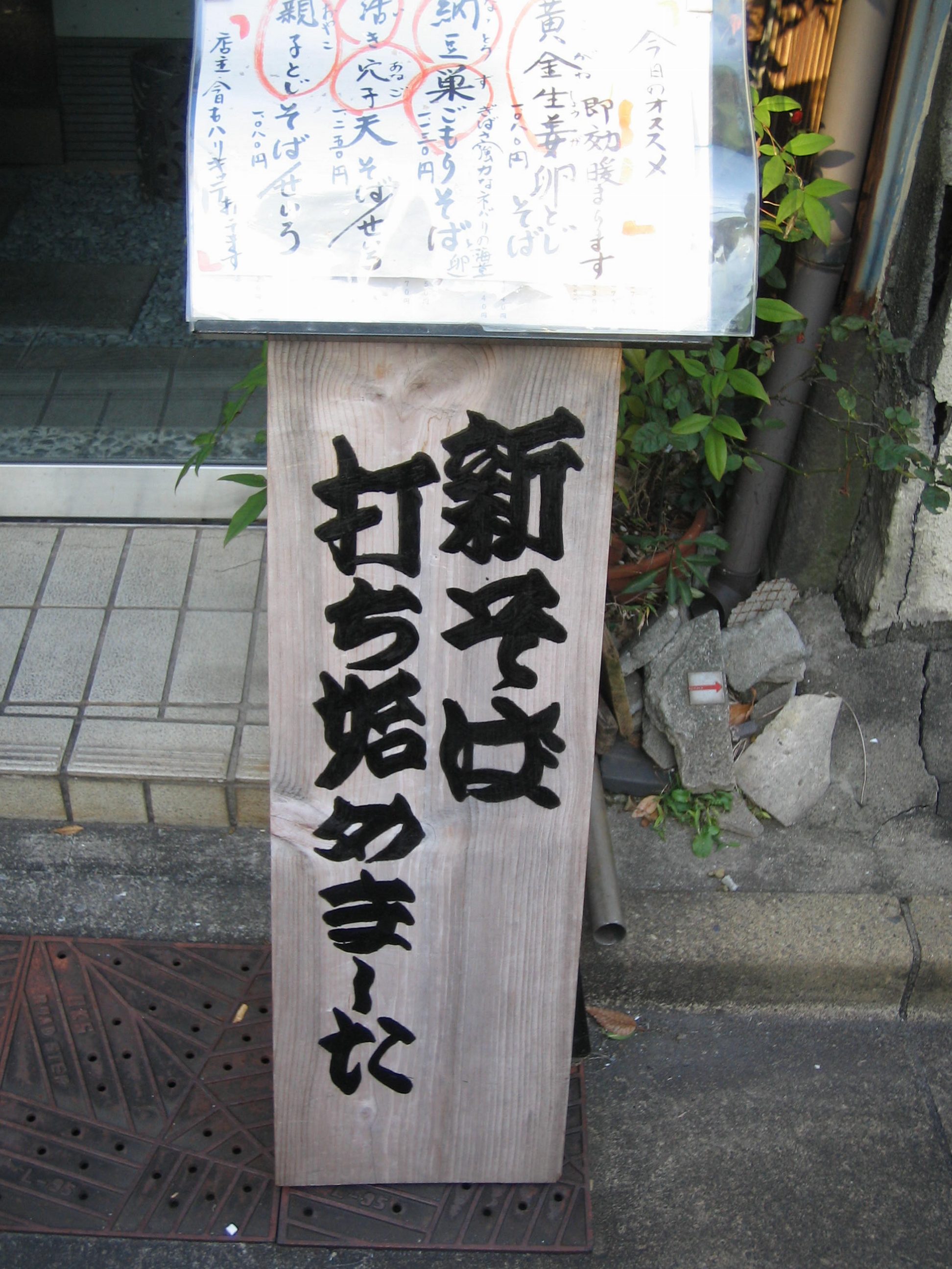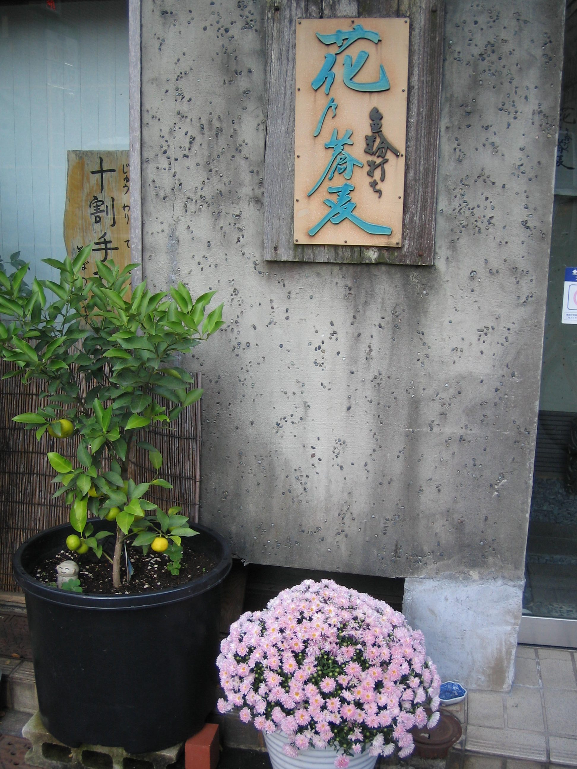 11月になると明治座前のイチョウ並木も少し色付き始め、そしてたくさんの銀杏が実り、早朝に浜町公園を散歩する近所の方たちはこれを楽しみにして拾っているようだと聞きました。茶碗蒸しに入っている銀杏は私も大好物ですが、強烈な匂いを放つ銀杏を洗って干さなければ美味しい銀杏はできません。もう少し時間に余裕ができたら私も拾おうかなと思います。 さて新そばの便りが北の方から順番に聞こえてきますが、人形町でも蕎麦屋さんの店先に新そばの看板を見かけました。北海道産、秋田産の新そば、楽しみな季節になってきました。散歩道にある蕎麦屋、「花乃蕎麦」は女性店主の店で、小柄な方ですが凄いエネルギーを秘めていて、思い立ってそば打ちの修業をし、直ぐにここに店を出したそうです。今日は定休日なので中に入れませんでしたが近々に行こうと思います。