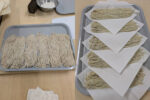 今回は、いただいた短いこま板を使ってみました。んっ、麺体を破れている。角度がつきやすく厚みのあるところに引っかかったものでした。延しムラをこのような道具の違いで実感することになるとは。やはり道具もおもしろいです。